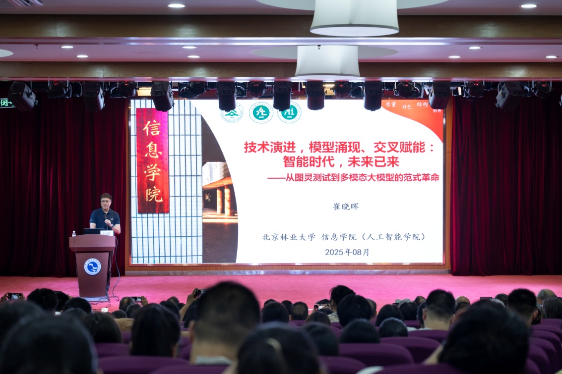刘渤以《中国科技馆里的科学家精神》为题,生动讲述科学精神与科学家精神的深刻意义;崔晓晖则围绕《技术演进、模型涌现、交叉赋能:智能时代,未来已来》展开报告,形象展示了人工智能的发展历程及其对生活与未来的变革影响。