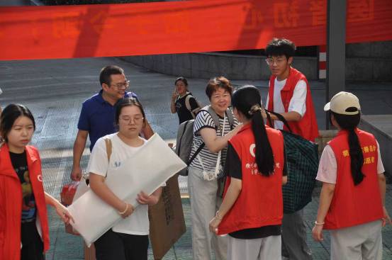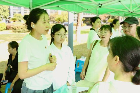 在迎新报到处,新生班主任、助班、党员先锋岗教师以及志愿者同学,都在热情细致地开展工作。他们耐心解答新生及家长的咨询并给予主动引导和温馨叮嘱。