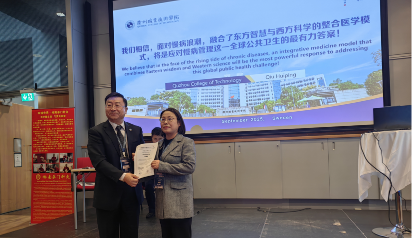 在隆重的开幕式上,举行了衢州职业技术学院与瑞典针灸学术研究学会共建“杨继洲学院(瑞典)”的签约和揭牌仪式,标志着我校“职教出海”项目首次落地北欧。瑞典针灸学术研究学会会长杨春贵与我校医学院院长邱惠萍代表双方签约,在全场嘉宾和专家的见证下,“杨继洲学院(瑞典)”正式揭牌。此次合作将以杨继洲针灸学术传承为基石,充分整合我校针灸推拿专业的教学优势与衢州市中医医院的临床资源,共同构建集教育、临床与科研于一体的中瑞针灸协作平台,进一步推动传统医学的国际交流与融合发展。这一项目的成功启动,是我校在职业教育标准、资源与模式协同出海方面的一次重要实践与创新探索。