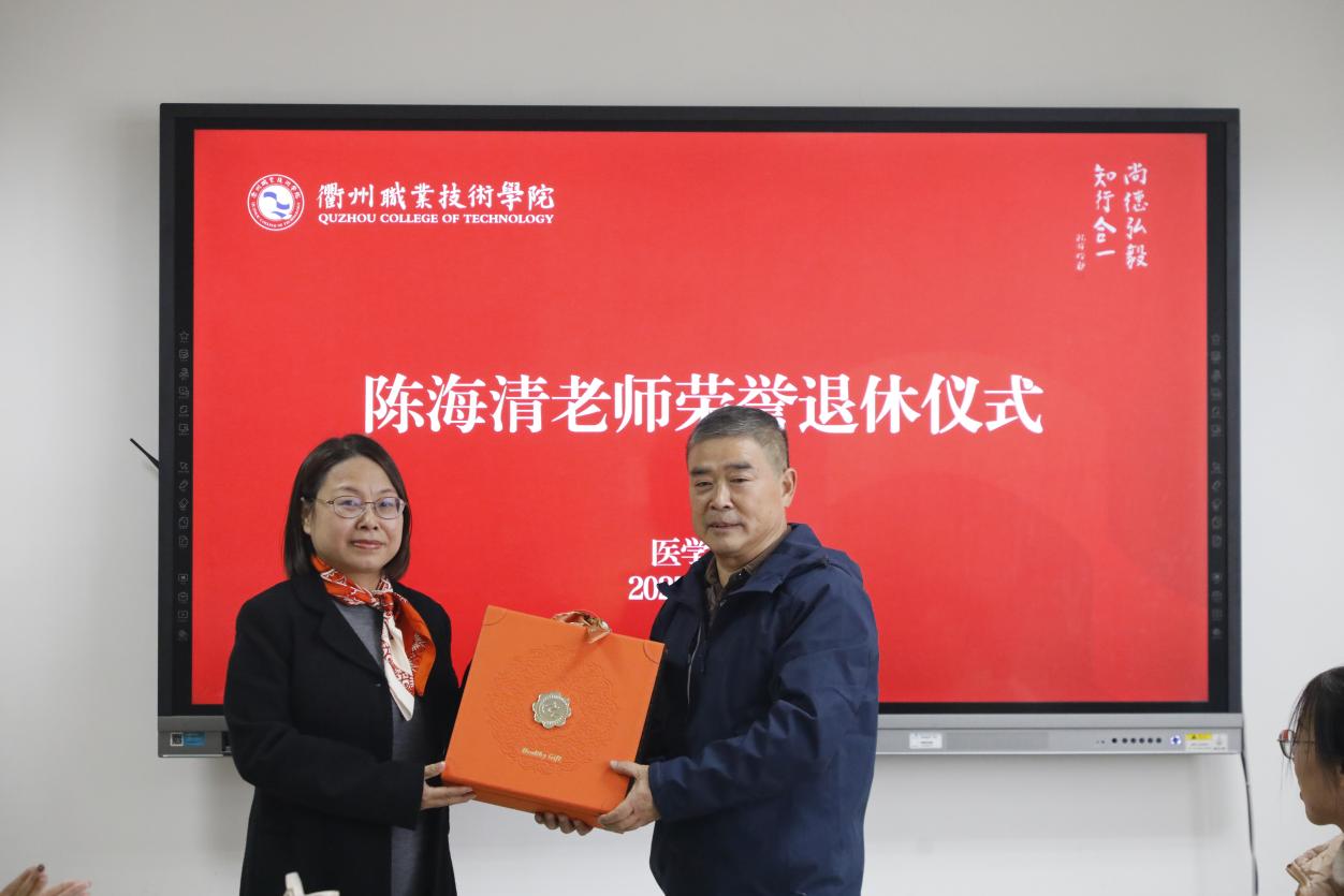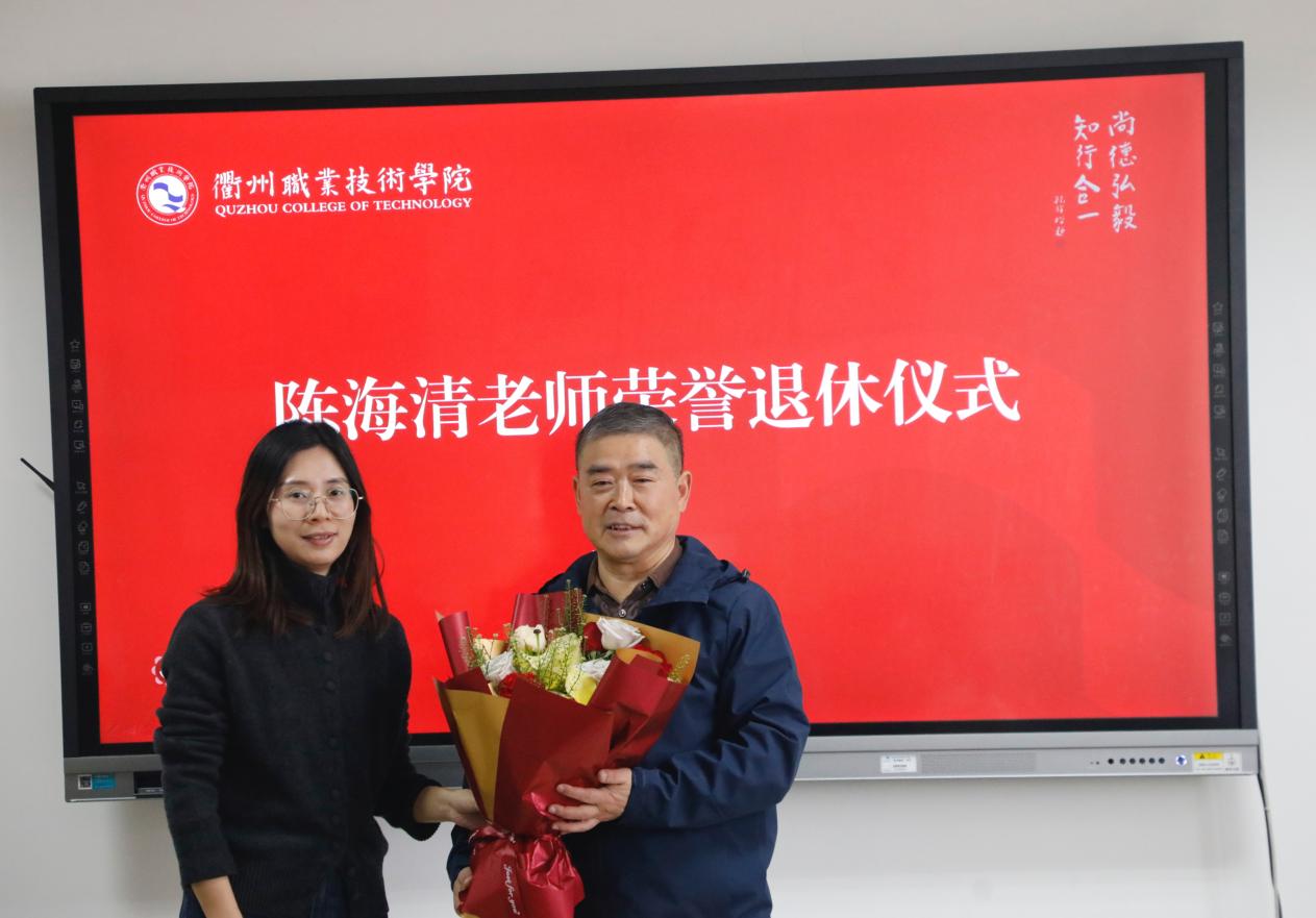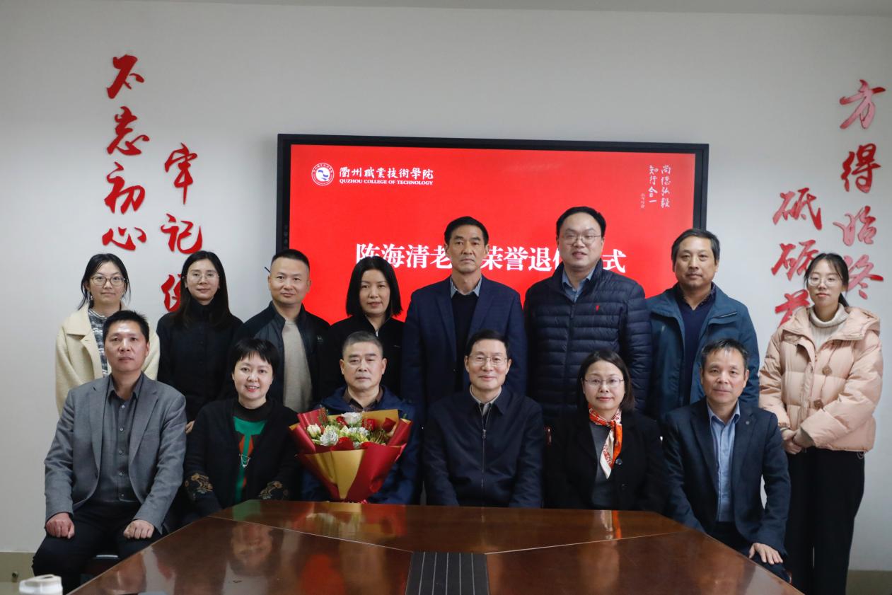 徐须实代表校党委对陈海清同志多年来在教育教学、学生管理、后勤保卫、审计监督等多岗位所付出的努力与贡献,予以充分肯定。他指出,陈海清同志政治坚定、勤勉务实,在不同岗位上始终顾全大局、恪尽职守,是学校事业发展的亲历者与推动者。他希望,陈海清同志退休后保重身体、享受生活,并继续关心和支持学校发展,为学校“新双高”建设建言献策。