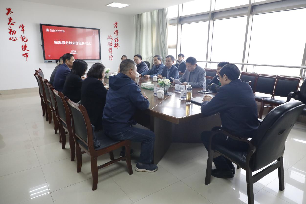 12月12日下午,医学院举行审计处原处长陈海清同志光荣退休仪式,校党委书记徐须实,党委委员、组织部部长周帅,医学院班子成员及部分教师代表参加。